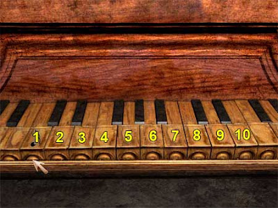 Nota: En este capítulo es cuando toparemos con el bug del piano. Aconsejo guardar partida antes de iniciar el puzzle para no perder los progresos realizados hasta ese momento. Recordemos que la forma de solventar el problema es, cuando pulsemos la última tecla, RÁPIDAMENTE pulsar la tecla ESC. Puede costar más de un intento pillar el momento exacto pero funciona.