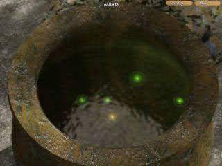 Coge el dedo de metal del guardia y úsalo con el cráneo de la pared para abrir una puerta de piedra. Entra y ve hacia el espejo. Pulsa sobre el espejo y dile las palabras mágicas que nos dio Lepinya. Coge el libro que aparece en el altar y regresa con Lepinya. Dale el libro y la bruja a cambio nos proporciona nuestro primer hechizo: "Encoger". Pulsa sobre el caldero de la bruja y fíjate bien en la posición que tienen las 5 luces de colores (4 verdes y una marrón) y vuelve a la cripta. Entra dentro y camina hacia la izquierda.