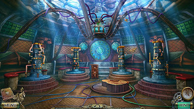 Recogemos un pico y unas piezas de mosaico del suelo. Examinamos el baúl, cogemos la figurita del ciervo y un trozo de cera de la vela derretida. En la máquina central de la cuerva usamos el dibujo del diagrama del inventario, si bien no podemos hacerla funcionar aún, nos interesa revisar qué cosas han de ser reparadas o encontradas, un un repuesto de tubo de cristal roto, una palanca, otro tanque amarillo, etc.